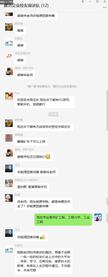 活动结束后,校友宣讲队成员在微信群讨论热烈,分享一线技术发展,积极为色情直播 学科专业建设建言献策,感恩母校关怀培养。