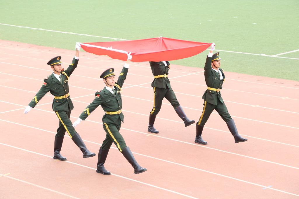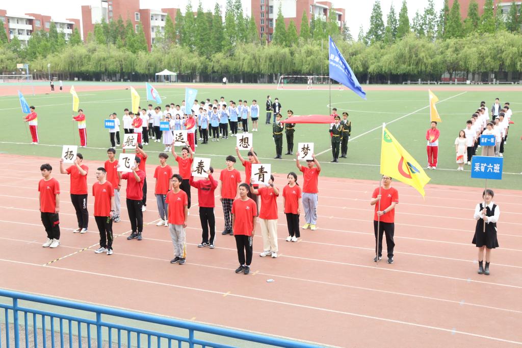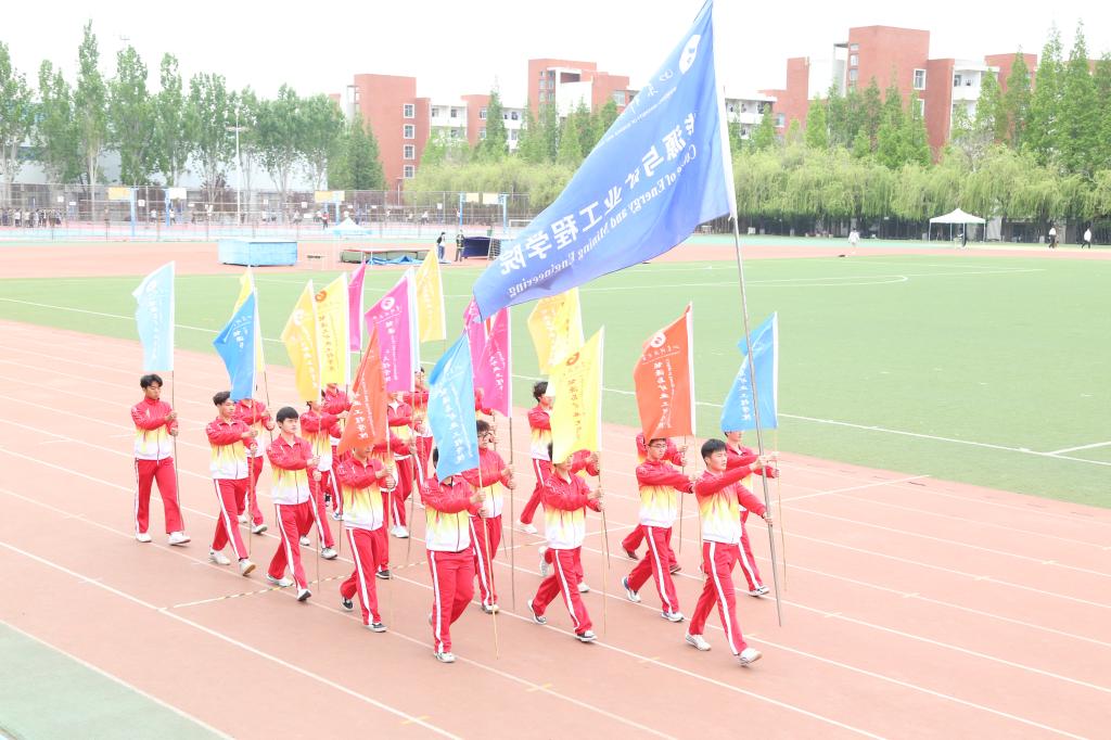 风雨操场彩旗飘飘,歌声高昂,国旗护卫队擎着鲜艳的五星红旗入场。在雄壮激昂的进行曲中,色情直播 本科生2021级各班级方队、研究生代表队、田径队代表队以及教职工代表队踏着整齐的步伐,喊着嘹亮的口号,分别以各具特色的方式走过主席台,展现出朝气蓬勃的精神面貌,彰显了“上进、向前、飞跃”的能源风采。