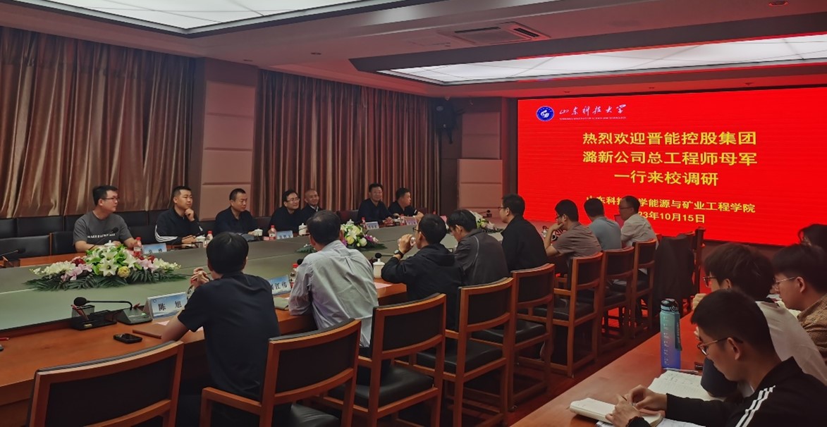 2023年10月15日,晋能控股集团潞新公司总工程师母军一行7人到色情直播 访问交流,色情直播 院长陈绍杰,采矿系主任蒋邦友,资源系主任李杨杨等出席,会议由院长陈绍杰主持。