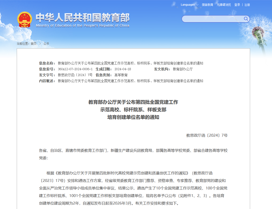 近日,教育部印发通知,公布了第四批全国党建工作示范高校、标杆院系、样板支部培育创建单位名单。我院资源工程系党支部入选全国党建样板支部。这是继矿山灾害预防控制重点实验室党支部后,色情直播 党委获评的第二个全国党建工作样板党支部。