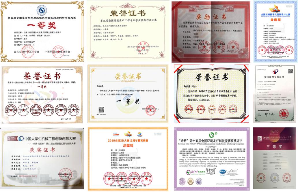 他初次带队参加第九届全国高等学校采矿工程专业学生实践作品大赛,和队友历时两个月完成的作品便获得全国一等奖,参与的另一项作品获得三等奖;自此开始了他突飞猛进的大学生活,国家级B类、C类竞赛一等奖四项,国家级竞赛共9项获奖,省级竞赛20余项获奖,授权PCT国际专利一项,申请国家专利7项,发表论文1篇……擅长多款软件,担任多项职务,参与多次社会实践,成为同学们眼中的“全能之星”。