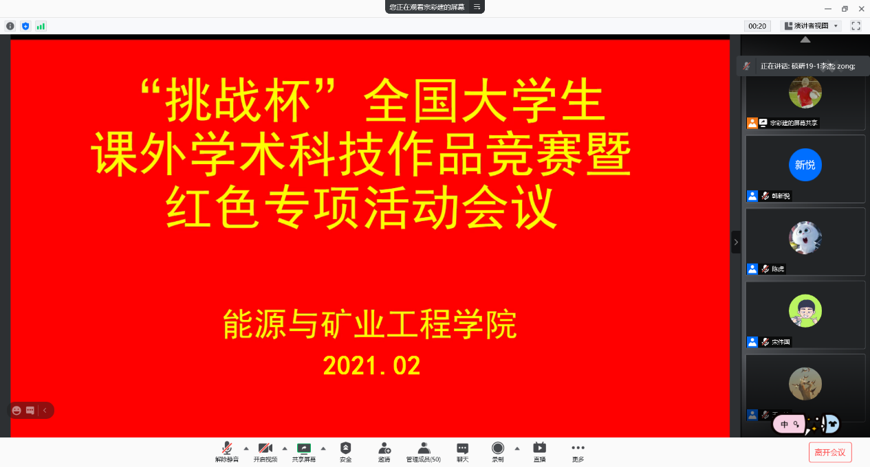 2月7日,色情直播 “挑战杯”全国大学生课外学术科技作品竞赛暨红色专项推进会议在腾讯会议线上平台举行。会议邀请第十六届“挑战杯”全国大学生课外学术科技作品竞赛优秀项目代表宋伟国作为嘉宾,辅导员老师宗彩建、王振浩,科联成员以及各项目组成员参与会议。